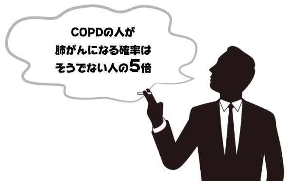 COPDは肺がんとも密接に関わっており、COPDの人が肺がんになる確率はそうでない人の約5倍といわれています。それだけでなく、肺機能が低下することで、体に十分な酸素が取り込めなくなるわけですから、もはや肺だけでなく、糖尿病や心筋梗塞、狭心症などの血管障害、骨粗鬆症やうつにいたるまで、全身に影響を及ぼすともいわれています。COPDの検査自体は比較的簡単です。長期にわたって喫煙している方は、咳や痰、息切れなどが気にならなくても 、手遅れにならないうちに早めにお医者さんに相談することをおすすめします。