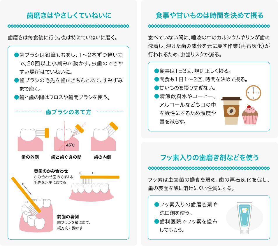 「歯磨き」「食べ方の工夫」「フッ素」の