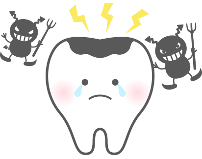 虫歯は歯についたプラーク(歯垢)の中の虫歯菌が、糖分を分解して酸を作り、歯を溶かすことで起こります。