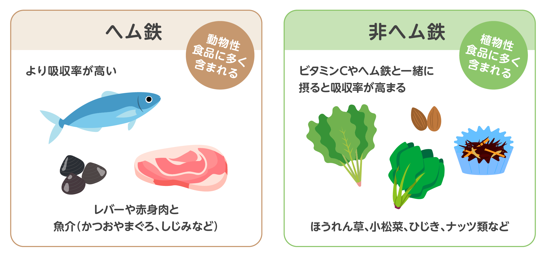 鉄分は主にヘム鉄と非ヘム鉄に分けられます。